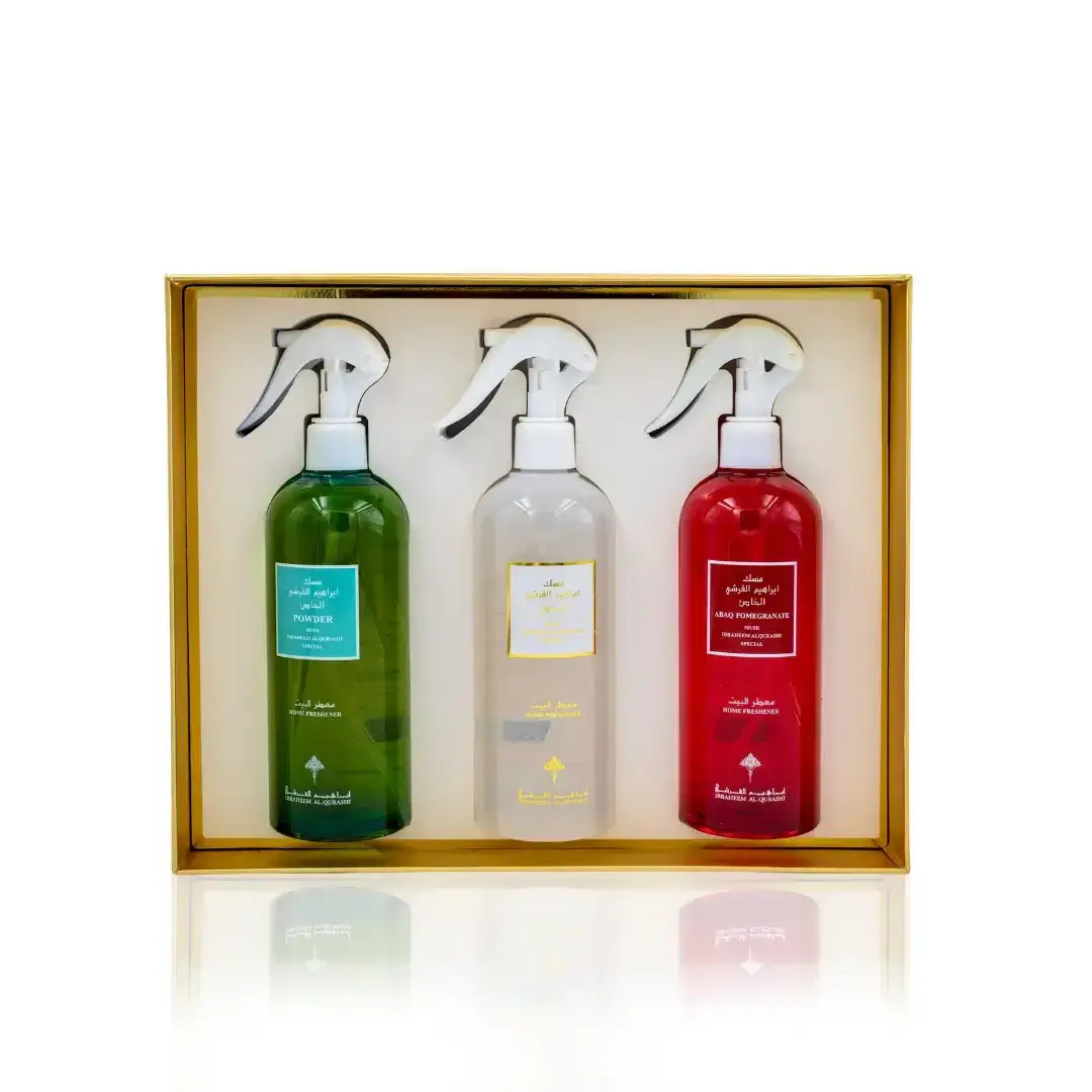 Une collection des trois meilleures senteurs de musc pour parfum d’ambiance, de musc grenade, de poudre et de musc spécial Ibraheem alqurashi pour une atmosphère plus sereine et calme.