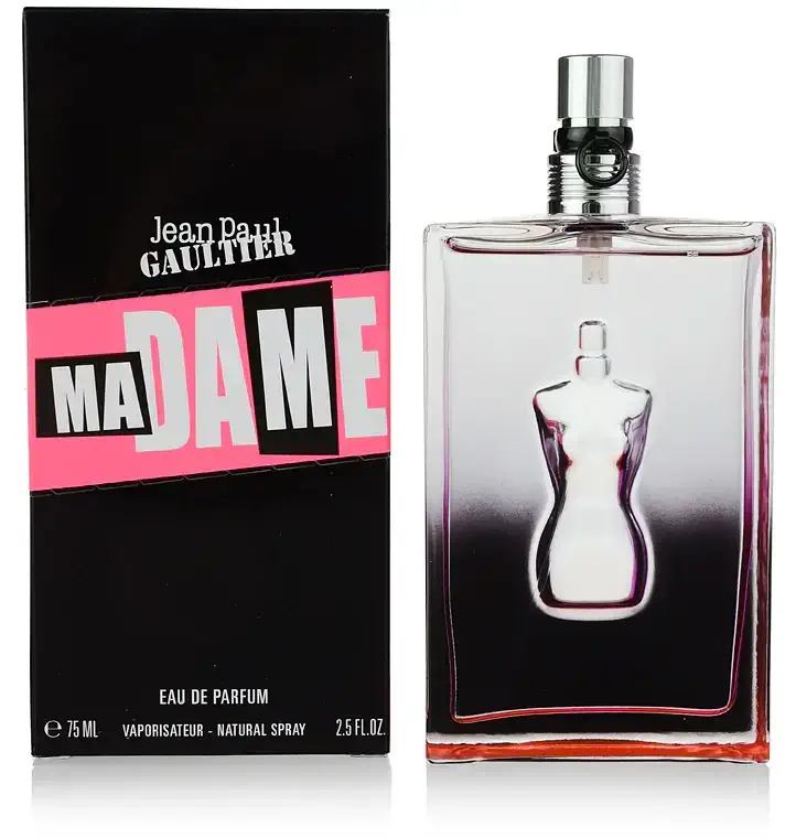 Jean Paul Gaultier Ma Dame Eau de Parfum de Jean Paul Gaultier est un parfum Chypré Floral pour femme. Ma Dame Eau de Parfum a été lancé en 2010. Les notes de tête sont Poivre rose et Orange; les notes de coeur sont Rose et Patchouli; les notes de fond sont Musc et Cèdre de Virginie.