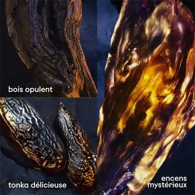 - Notes de fond : Vanille, fève tonka, ambre